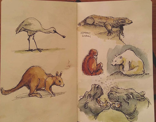 Diese Skizzen entstehen manchmal in 5-10 Minute, manchmal in 1-2 Stunden. Die Grössen sind: Postkartenformat, 14.5x10.5cm, 29x10.5cm, 21x15cm, 42x15cm.