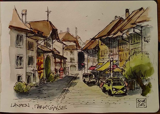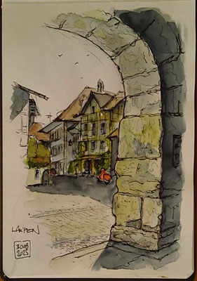 Urban sketching und design, illustration sense in Laupen, Bern, Schweiz.