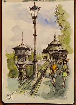 Als Urban-sketcher an der frischen Luft, schnelle und lockere Linien auf das Papier zu bringen macht einfach Spass . Skizzieren lässt uns in den Moment eintauchen und unsere Umwelt intensiver erleben. Was wir zeichnen bleibt besser in unserer Erinnerung haften, als wenn wir es fotografiert hätten. Egal ob wir ein exotisches Gebäude, oder unsere Kaffeemaschine abzeichnen.