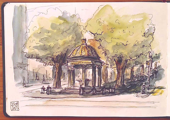 Als fotografierte Postkarte wäre das Sujet kaum geeignet. Aber als urban Sketch finde ich das Resultat interessant. Aus jedem Ort eine interessante und ansprechende Skizze zu machen, ist für mich die grosse Herausforderung und Chance zugleich beim urban sketching. Und dabei macht es sogar noch Spass!